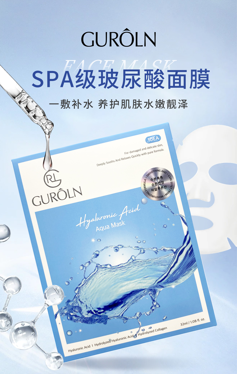 嬌諾蘭 玻尿酸面膜32ML*10片